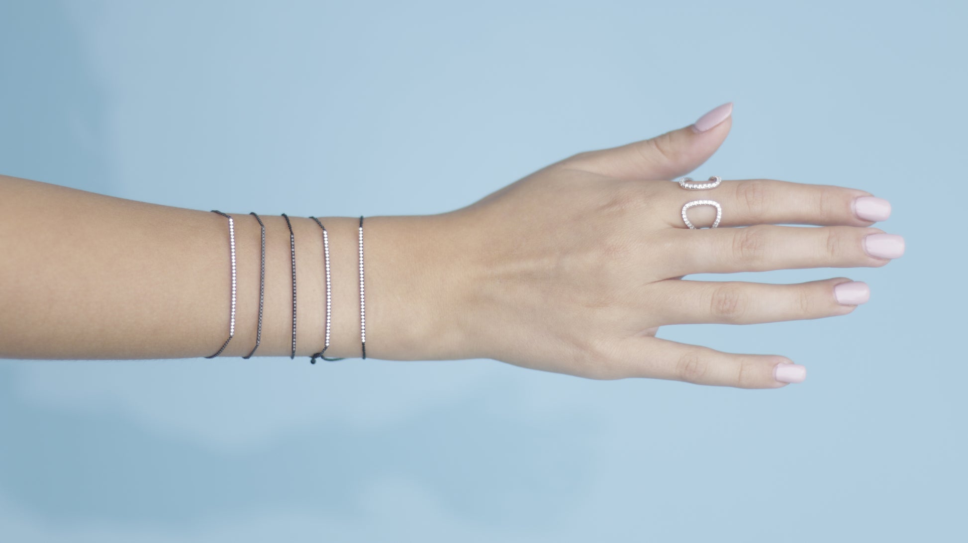 This diamond bracelet has been inspired by my elegant little teacup dog whom I adore! Her name is Pepita. She is smart, elegant and discrete just like the bracelet;) It's available in all colors.