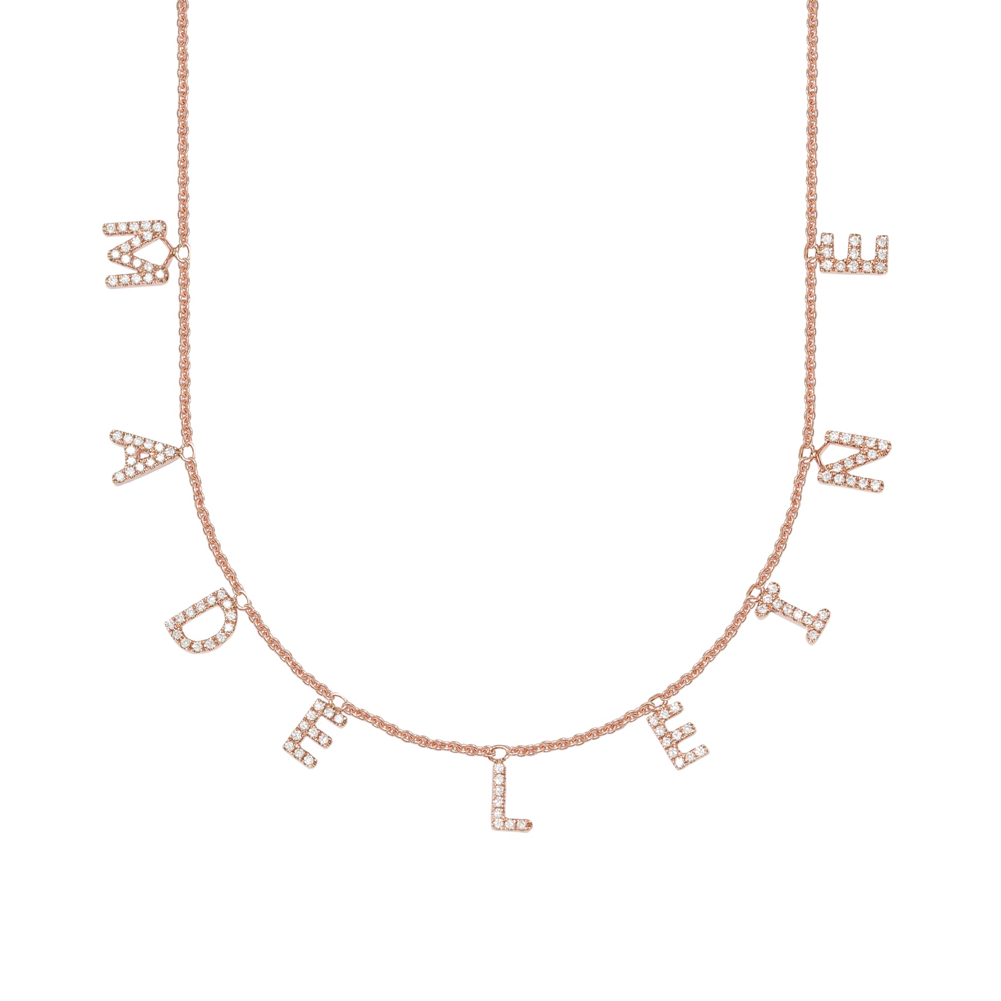 Choose your own 18 ct gold diamond letters (6mm dimmension)which have a special meaning to you! A name of a friend or a city of dreams to be reminded of. Create your own trendy letter necklace.